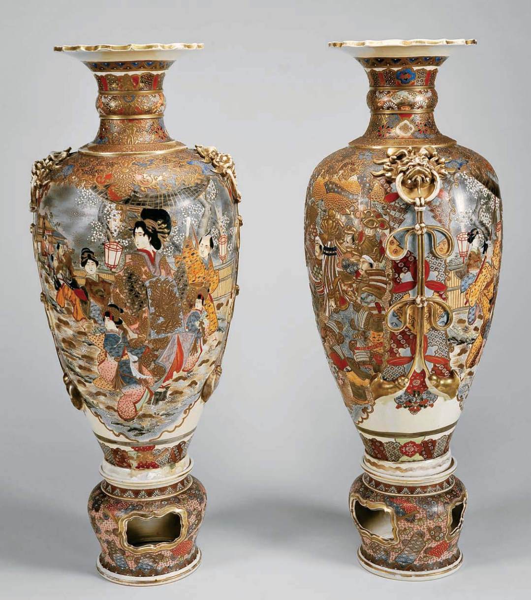 Japanese faience, “Satsuma” polychromatic and gilt relief decoration