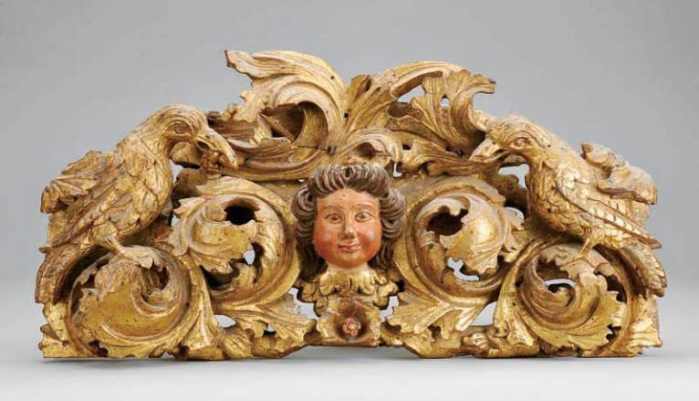 maneirista, madeira, decoração policromada e dourada “Símbolos