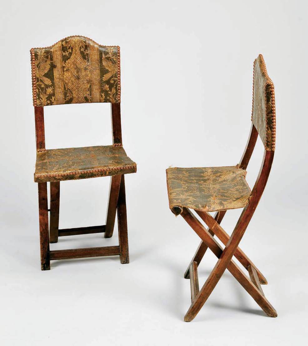 embossed leather backs and seats studded with nails,