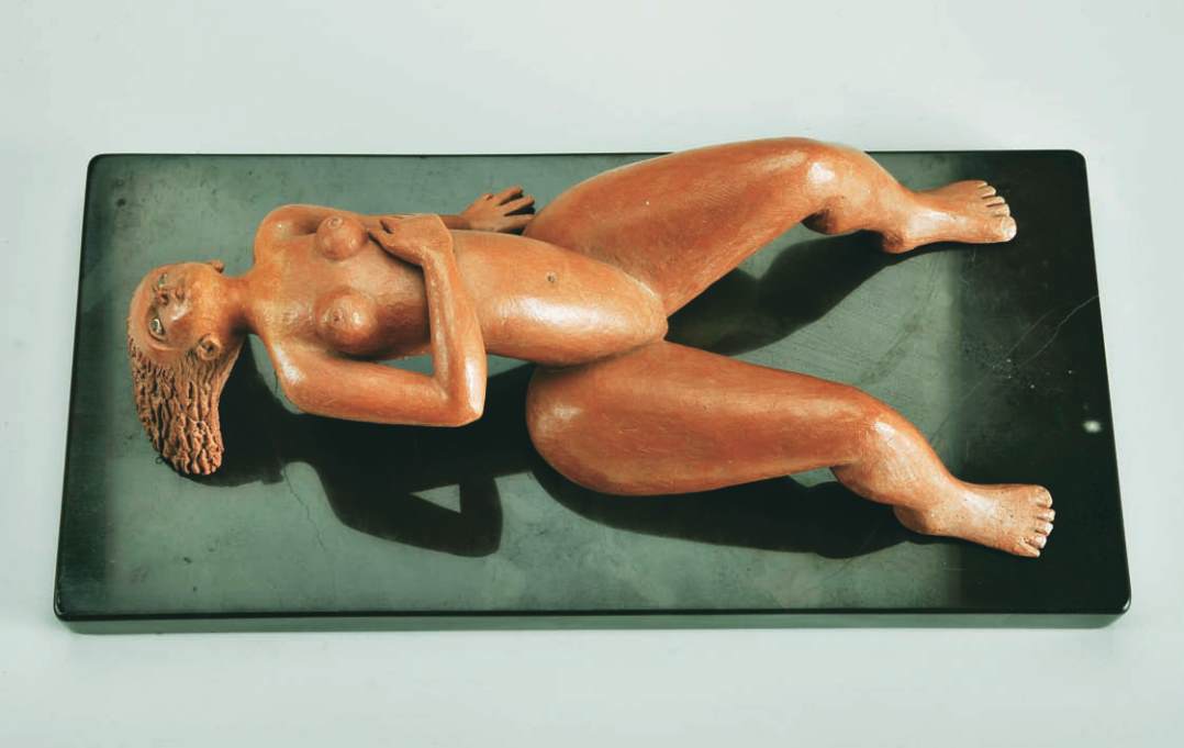 escultura em terracota com engobes,
