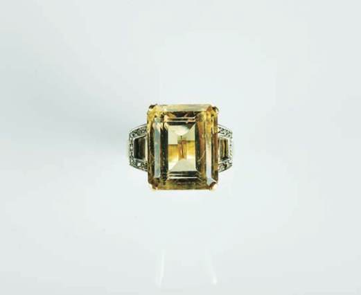 ouro bicolor, cravejado com citrino com o peso aproximado de 11 ct.