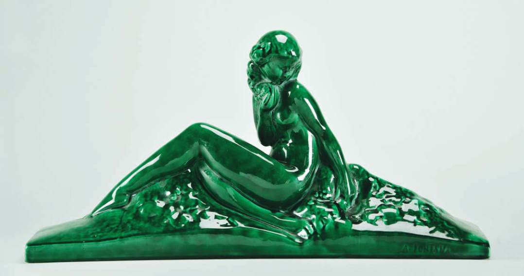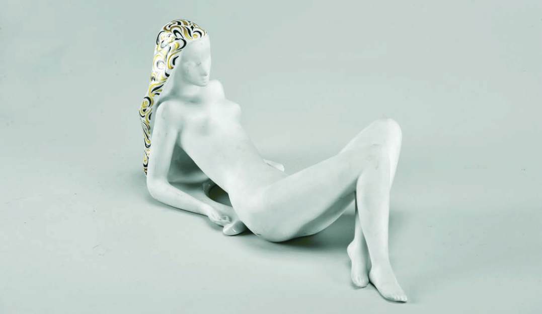 escultura em biscuit e porcelana pintada a negro e dourado da Fábrica