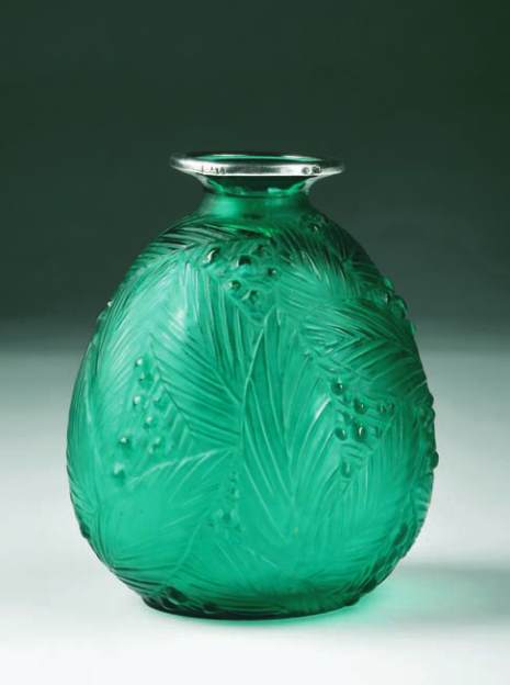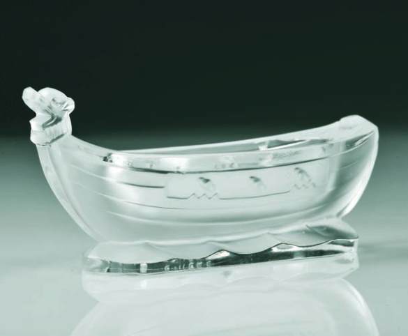 cristal moldado, decoração relevada e gravada “Folhas”, aro em prata,