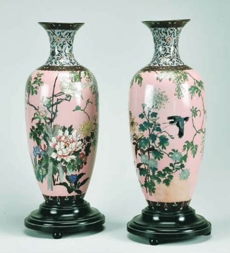 cobre esmaltado, decoração policromada “Pássaros e flores”,