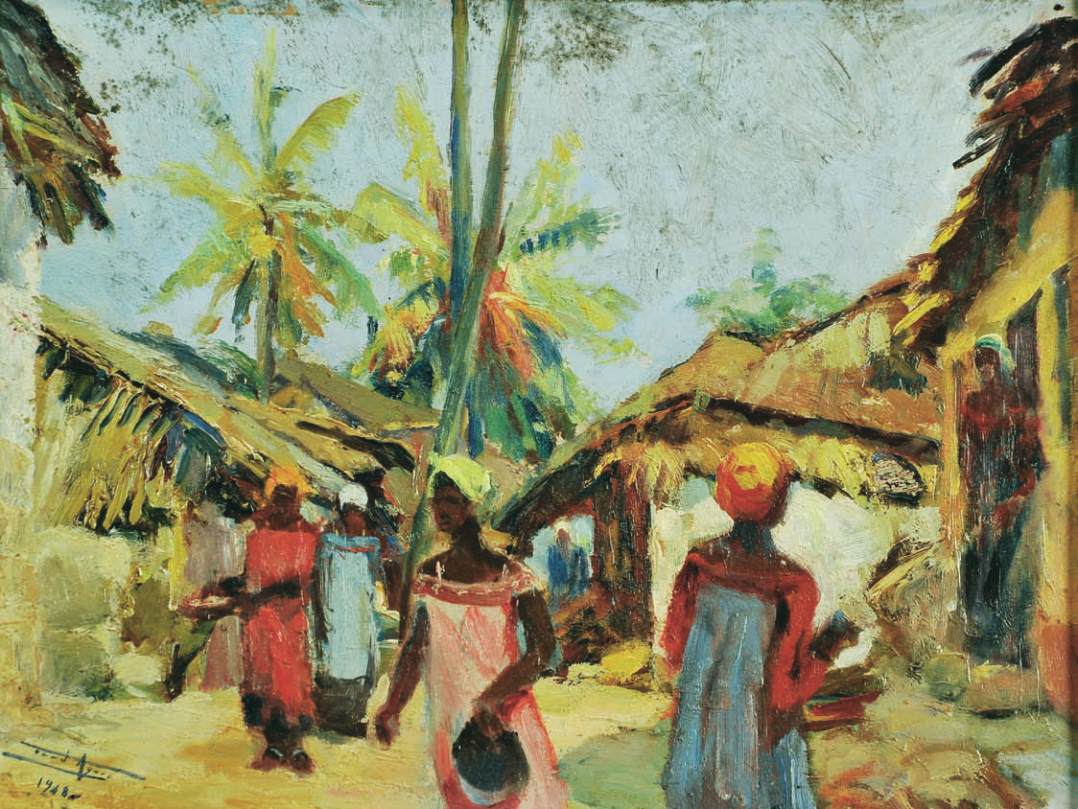 “African landscape with figures (Mozambique)”,