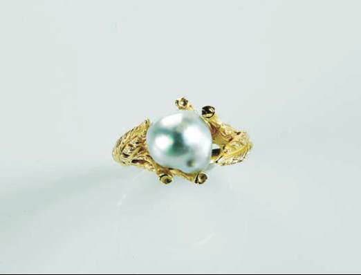 cravejado com pérola de cultura barroca de tom cinza,