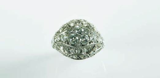 platinum, set with 22 rose cut brilliants and 16 ancient cut brilliant diamonds