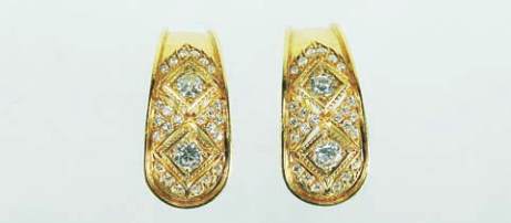 em ouro cravejadas com 22 rubis e 6 diamantes em talhe de brilhantes