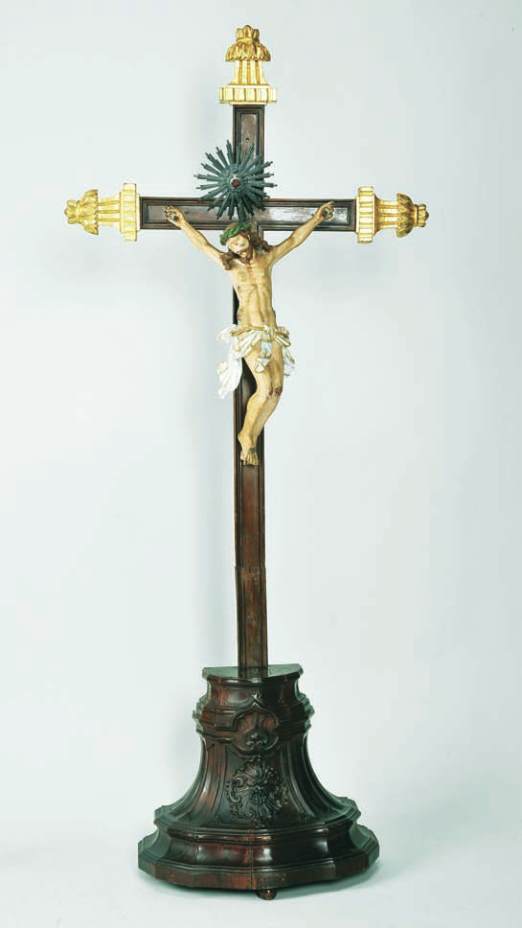 cruz em pau-santo com entalhamentos,
