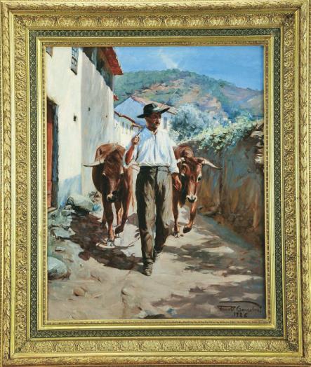 “Village excerpt - man driving oxen”,