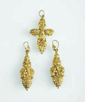A pair of Earrings and a pendant “Cross”,