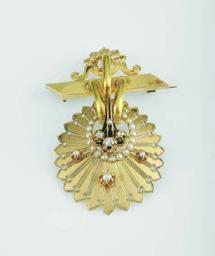 cravejado com 1/2 pérolas e 3 diamantes em talhe antigo de brilhante