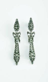 silver mounts, elliptical upper element, central lace and pear shaped pendent, pieces formed by