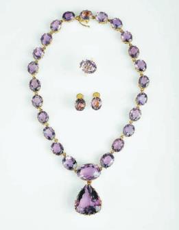 comprising a necklace with pendant, a ring and a pair of earrings,