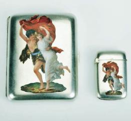 Dim. - 8 x 6,5 x 1,5 cm (cigarreira); 4,5 x 3 x 1 cm (fosforeira);