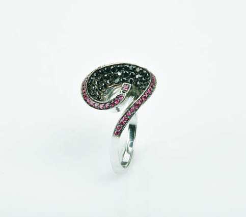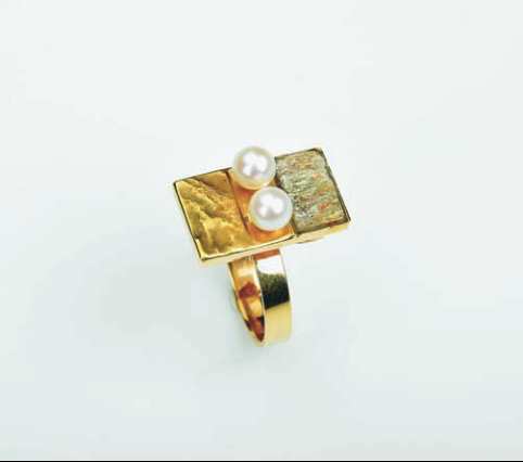 cravejado com 2 pérolas de cultura (5,4 mm) e pedra dura,
