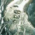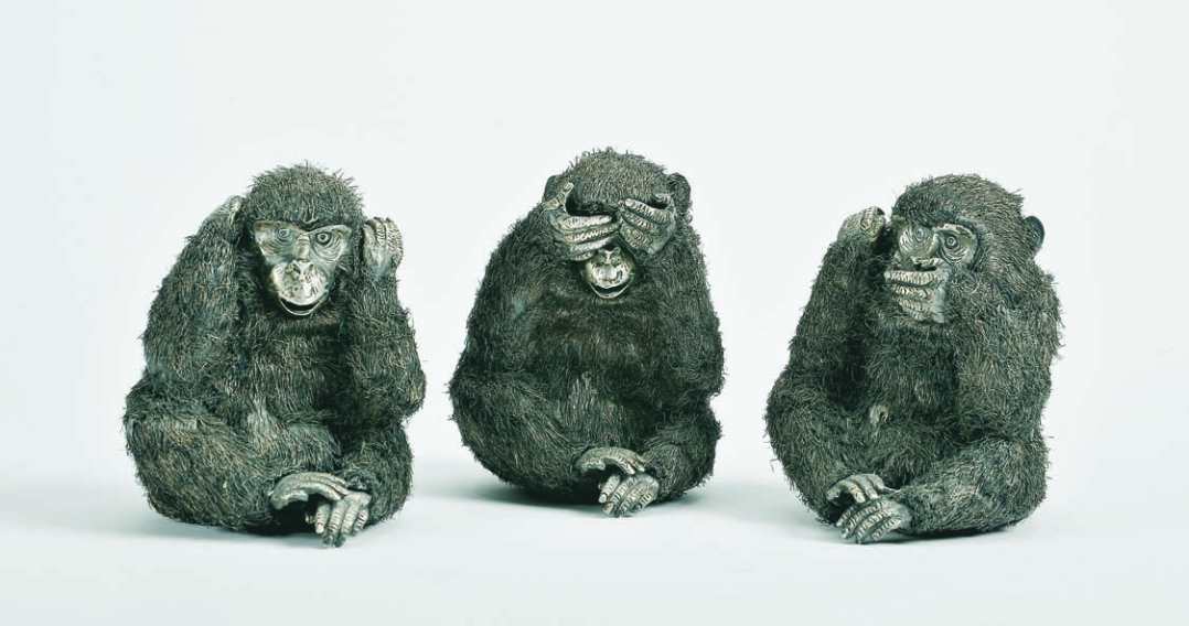 três esculturas em fio de prata,