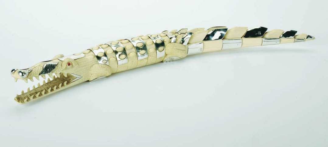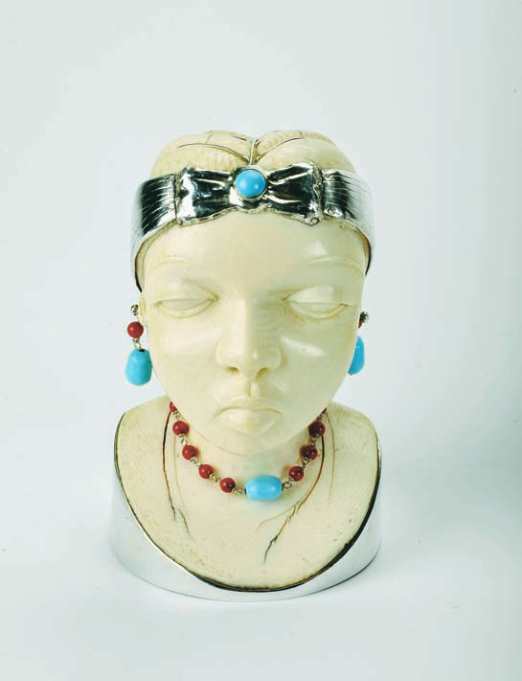 escultura em marfim, aplicações em prata, fita,