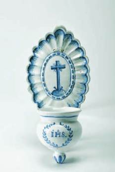 faiança, decoração a azul “Cruz” e inscrição “IHS”,