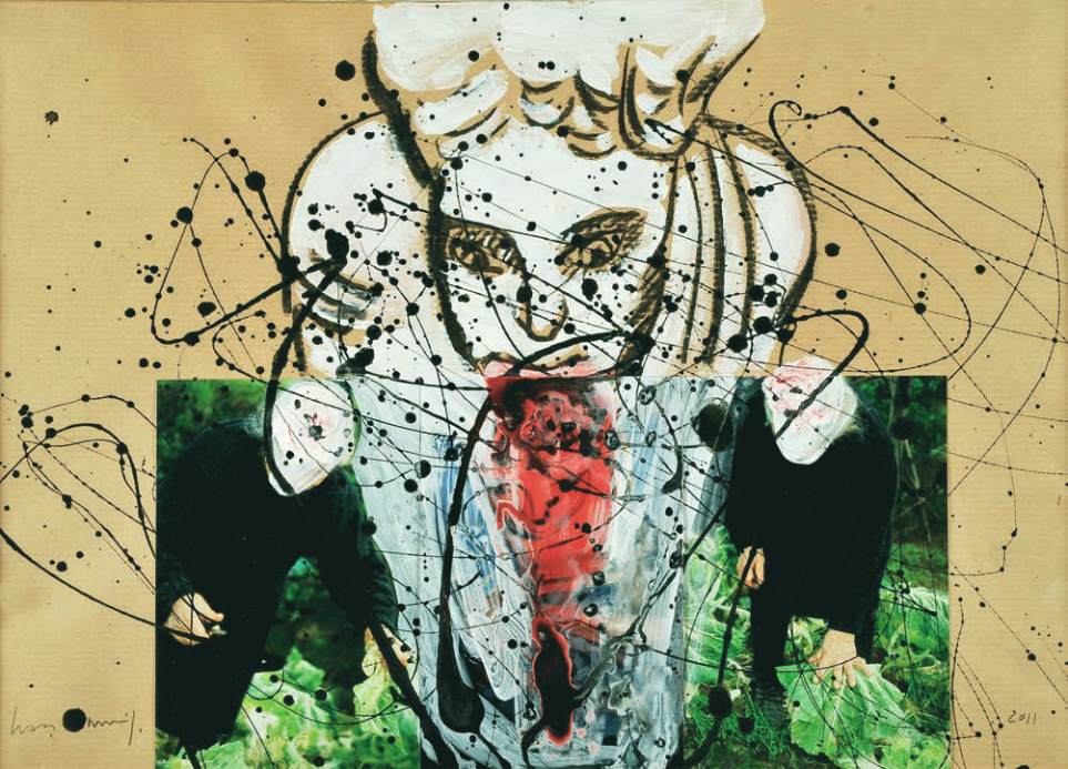colagem, acrílico, tinta da China e carvão sobre papel, assinada e datada de 2011