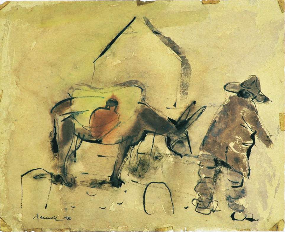 aguarela sobre papel, pequenos defeitos, assinada e datada de 1950