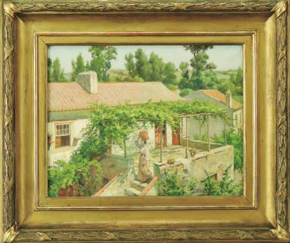 ANDscAPE wIth hOUsEs AND fEMALE fIGURE