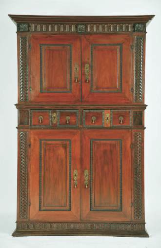vinhático e pau-santo com entalhamentos, ferragens em metal amarelo recortado e vazado, português,