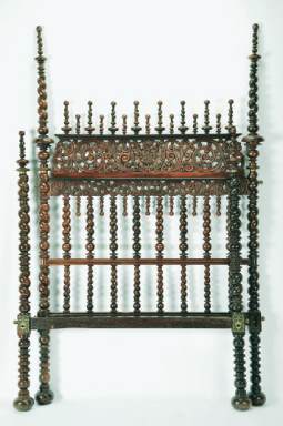 e travessas torneadas, ferragens em metal recortado e vazado,