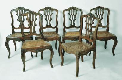 in the French manner, carved walnut, cane seats, Portuguese, faults and defects,