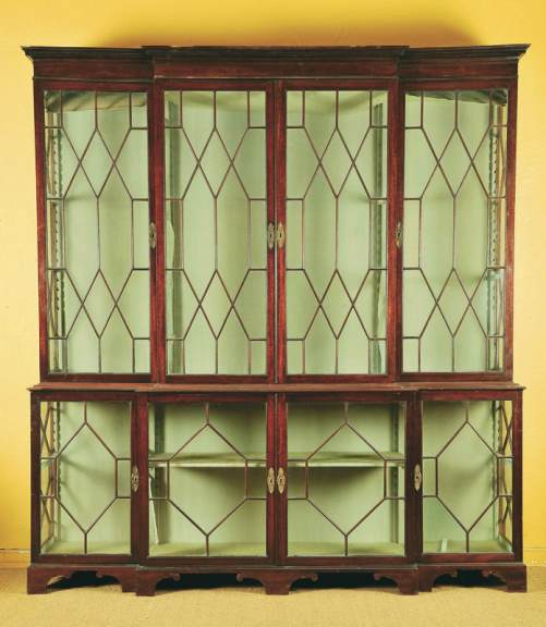 Brazilian mahogany, glazed doors and sides, yellow metal mounts,