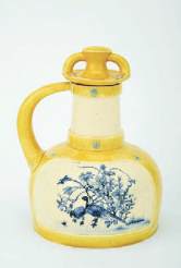barro vidrado, decoração relevada a amarelo simulando metal rebitado com reserva