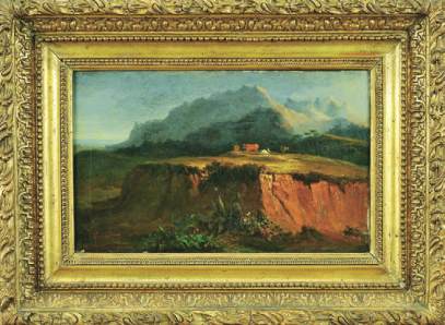 óleo sobre tela, reentelado, pequenos restauros, pequenas faltas na pintura,