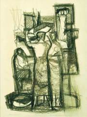 carvão e giz sobre pano colado em madeira,
