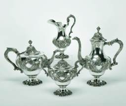 estilo D. José, prata, composto por bule, cafeteira leiteira
