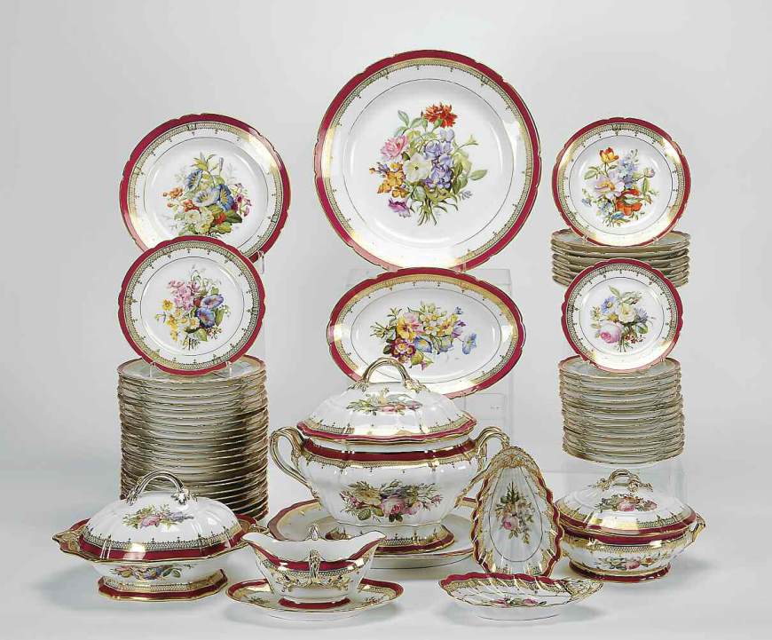 of olive dishes, a serving dish, 8 soup plates, 24 shallow plates,