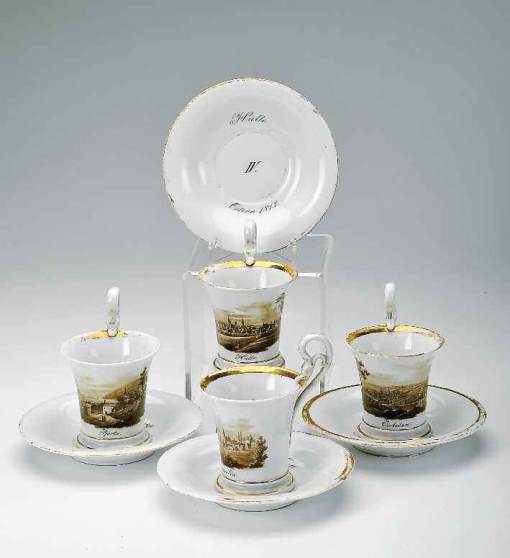Biedermeier, porcelana de Meissen, decoração a sépia “Vistas de cidades”,