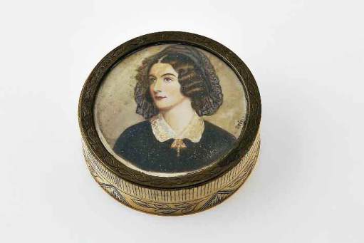 marfim e tartaruga, tampa com pintura sobre marfim “Senhora”,