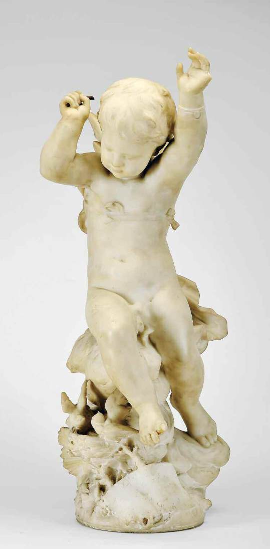 French, 19th/29th C., missing finger and part of the metal arrow,