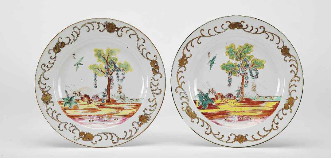 porcelana chinesa de exportação, decoração policromada e dourada “Altar do amor”,