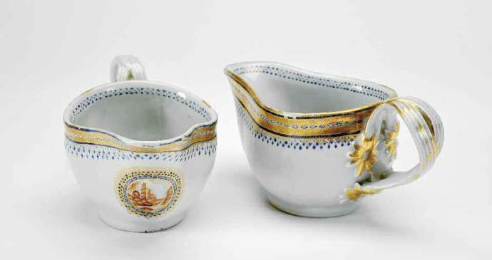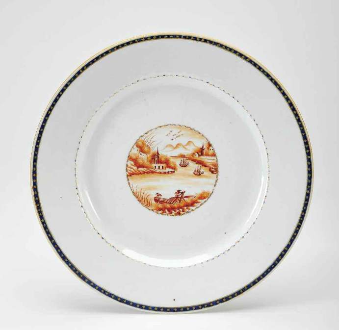porcelana chinesa de exportação, decoração a azul e dourado,