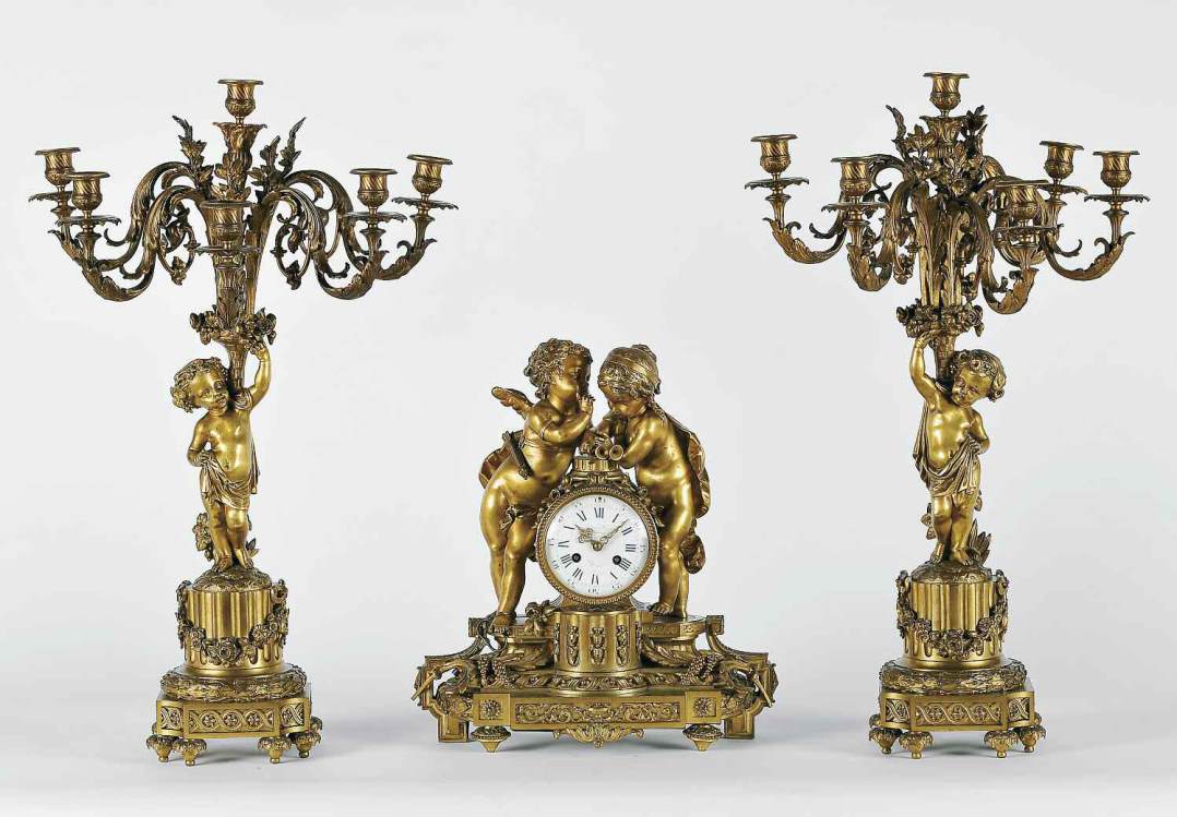 Dim. - 45 cm (relógio); 74 cm (candelabros)