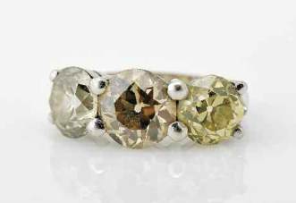 platina, cravejado com 3 diamantes em talhe antigo de brilhante com o peso aproximado
