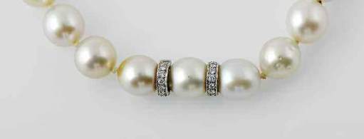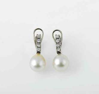 ouro, cravejados com 2 pérolas dos Mares-do-Sul (10,5 mm) e 8 diamantes em talhe