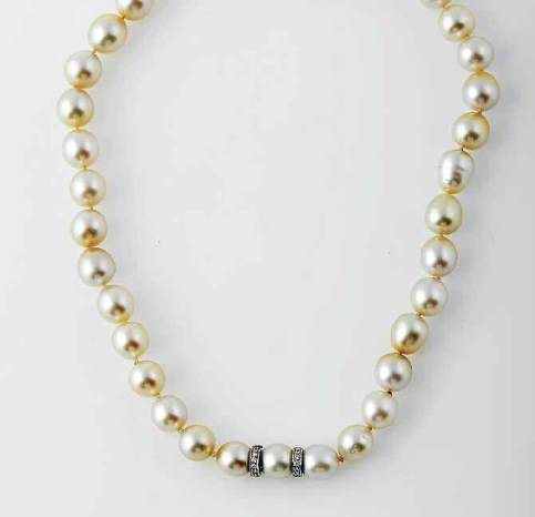 fiada de pérolas de cultura dos Mares-do-Sul (10~12 mm), fecho em