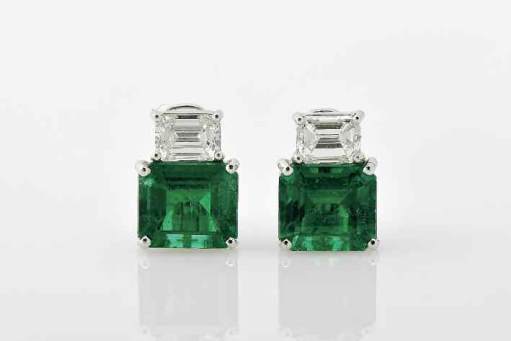 approximate weight of 1,80 ct. and 2 rectangular cut emeralds