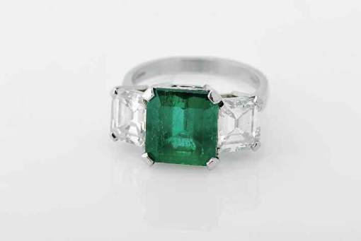 com o peso aproximado de 4 ct. e esmeralda em talhe rectangular