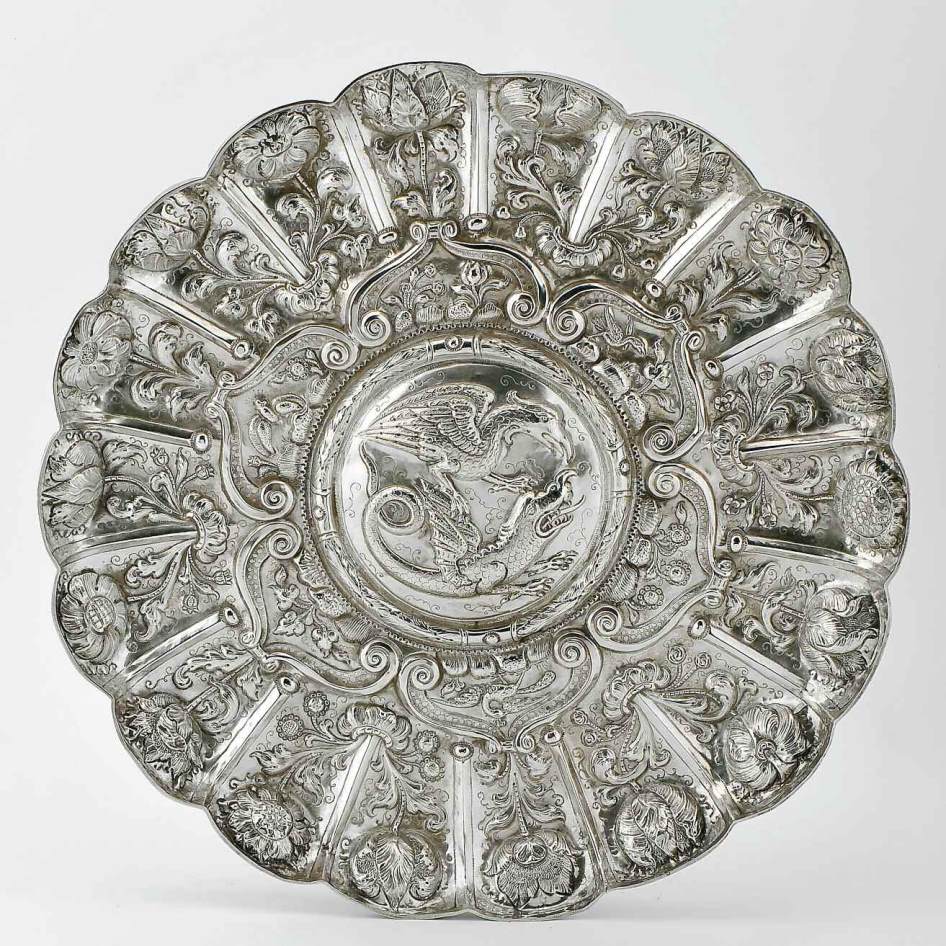 barroca, prata, decoração gomada e relevada “Túlipas”, “Animais”