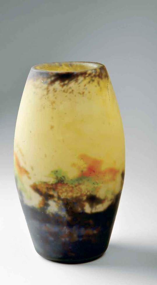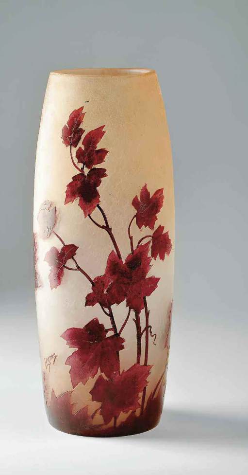 Art Nouveau, glass paste, “Vine leaves” acid engraved
