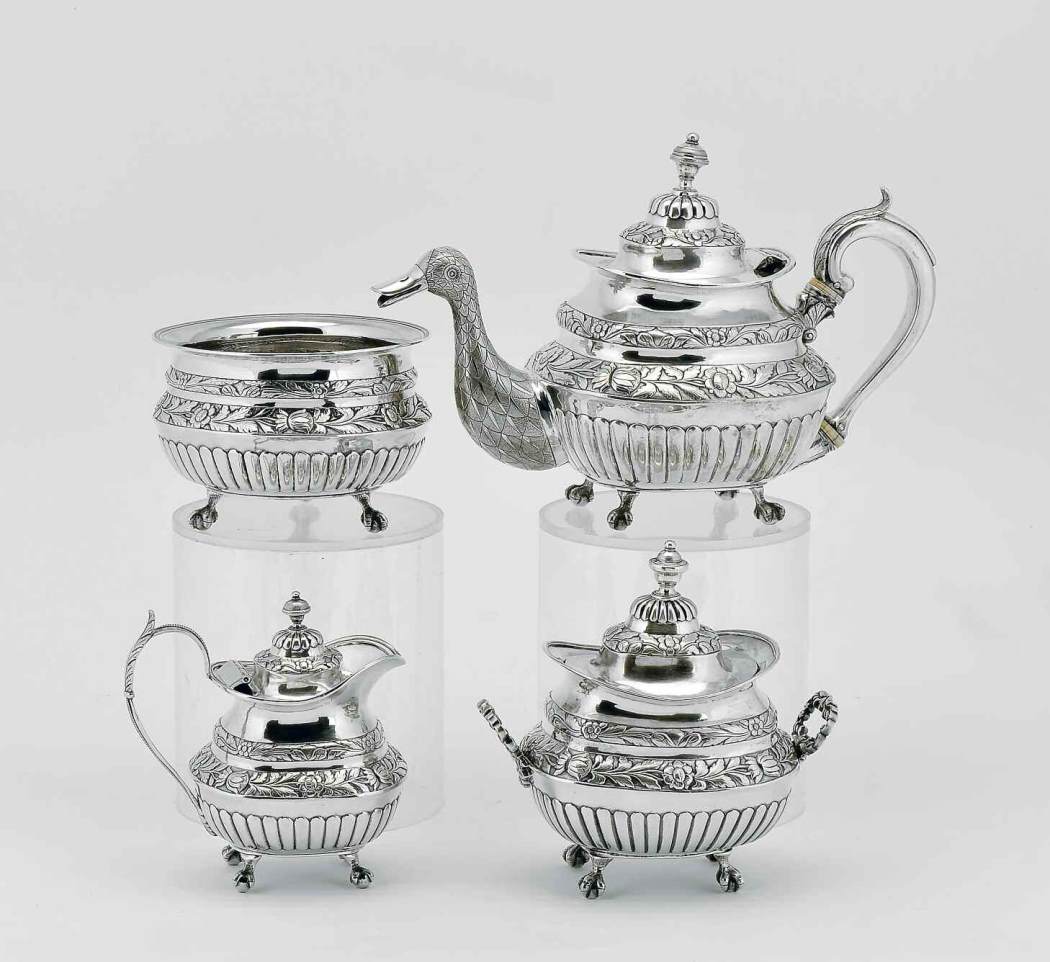 D. José (1750-1777), prata, composto por bule, leiteira, açucareiro e taça