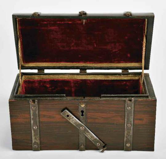 Brazilian rosewood veneer, iron straps and